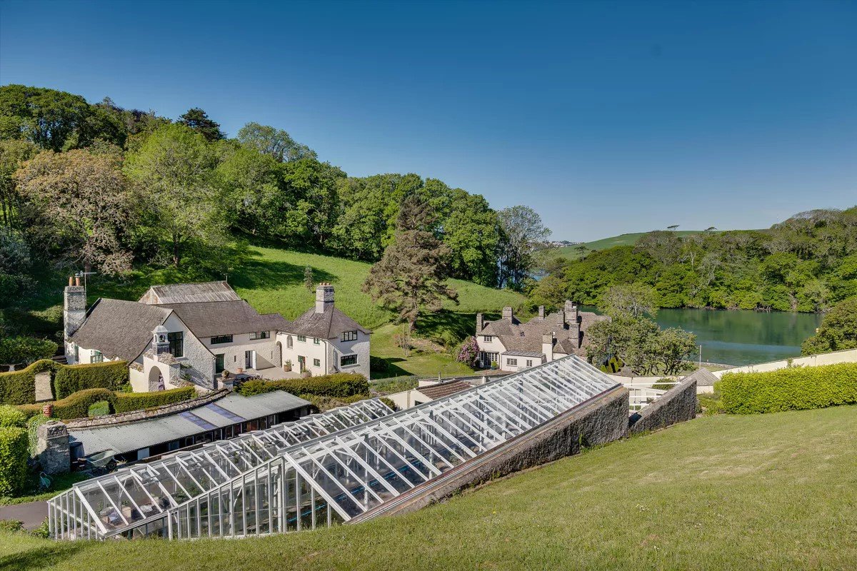 Overlooking the Kingsbridge–Salcombe Estuary, this 1920s estate was reconfigured from separate fishing cottages into a single residence with ten bedrooms and nine bathrooms. The design preserves its historic character through exposed timber beams, open fireplaces and